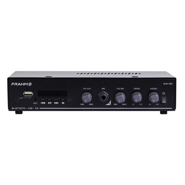 AMPLIFICADOR FRAHM SLIM 1000 G5 40W - 32101 Avaliação: SKU.: 14540 AMPLIFICADOR FRAHM SLIM 1000 G5 40W - 32101 is available for purchase in increments of 1 Faça Login ou Cadastre-se para comprar Descubra mais sobre A linha nº1 em amplificador comercias do Brasil, chega em sua quinta geração (G5), trazendo ainda mais tecnologia e um visual único e inovador. Esta geração reflete toda a confiabilidade, sem perder sua essência. O amplificador Slim 1000 G5 com 40 Watts RMS de potência, aceita qualquer número de caixas de sobrepor ou caixas de embutir inferiores a 12 (usa-se de 1 a 12 sem problemas com limite mínimo de impedância). Visual único e moderno Seu visual, reflete todas a inovação da linha líder em amplificadores. Fonte chaveada Com proteção a instabilidade da rede, mantendo a potência, mesmo com oscilações da rede elétrica, de menor tamanho e peso, “comparado com fontes convencionais” fazendo com que o equipamento fique leve e sem a necessidade de usar transformadores pesados. Confiabilidade eletrônica Em sua quinta versão eletrônica, traz ajustes e estabilidade a sistemas de som. INDICAÇÃO DE USO: Recepções, clínicas, conveniências, farmácias, lojas e muitos outros. Recomenda-se utilizar com no máximo 35 metros de fio (distância entre a última caixa de embutir ou sobrepor em relação à posição onde ficará o amplificador). BENEFÍCIOS: Visual único e moderno; Ligação de caixas em paralelo; Facilidade em sua operação. Informações Técnicas Potência 40W RMS (12 caixas de 8 Ohms em paralelo) Amplificador Classe AB Número de canais saída 1 canal (Mono) Conexões de entrada 1 USB / FM / MicroSD / BT / P2 Conexões de entrada 2 Entrada auxiliar 1x (RCA) Conexões para microfone 1x (P10) Sensibilidade do AUX 350m VRMS Impedância do AUX 27K Ohms Equalizador (2 vias) Graves e agudos Bivolt automático 90-240V Dimensões (AxLxP) 66x242x128mm Peso 1000g Conteúdo da Embalagem 01 Amplificador Slim 1000 G5 01 Controle remoto 01 Fonte de alimentação externa 02 Pilhas AAA 01 Manual de instruções Características Código Identificador (SKU) 14540 Voltagem Bivolt Garantia do Fabricante 12 meses Modelo SLIM 1000 G5 40W - 32101 Marca FRAHM EAN 7896673816580 NCM 85437019 Origem do Produto Nacional