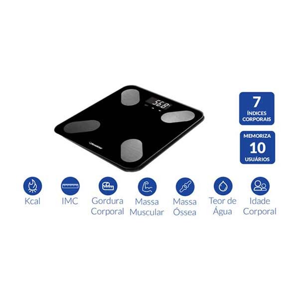 BALANÇA DE BANHEIRO ROADSTAR HOME LINE DE BIOIMPEDANCIA - RS470BR Avaliação: SKU.: 12365 Avise-me quando chegar Descubra mais sobre A bioimpedância é um exame que analisa a composição corporal, indicando a quantidade aproximada de músculo, osso e gordura. Esse exame é muito utilizado em academias e como complemento em consultas de nutrição para avaliar a composição corporal da pessoa e, assim, indicar o melhor plano alimentar e de treino ou para avaliar os resultados. Elegante em uma base vidro preto de alta resistência e com eletrodos especiais para melhor medição, a balança de Bioimpedância RS-470BR mede 7 índices corporais e têm memória para até 10 usuários, o que irá facilitar o controle do peso e da saúde de cada um de sua família. Mantenha a saúde de sua família em dia com a balança de Bioimpedância RS-470BR. Informações Técnicas: -Capacidade: 180 Kg / 397 lb / 28st: 5lb -Divisões: 0.1 Kg / 0.2 lb / 1lb -Unidades: Kg / lb / st: lb -Visor: LCD de 76x31 mm -Plataforma: Vidro temperado de alta resistência -Índices Corporais: Kcal, IMC, Gordura Corporal, Massa Muscular, Massa Óssea, Teor de Água e Idade Corporal -Memória: até 10 usuários -Alimentação: 2 pilhas AAA Características Código Identificador (SKU) 12365 Garantia do Fabricante 12 meses Marca ROADSTAR EAN 7898587424332 NCM 8423.10.00 Origem do Produto Estrangeira Mercado Interno - Adquirida no mercado interno