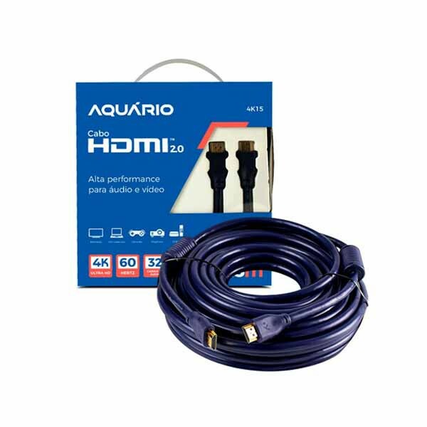 CABO HDMI AQUARIO 2.0 4K ULTRA HD 3D 15M COM FILTRO - 4K15 Avaliação: SKU.: 13475 CABO HDMI AQUARIO 2.0 4K ULTRA HD 3D 15M COM FILTRO - 4K15 is available for purchase in increments of 1 Faça Login ou Cadastre-se para comprar Descubra mais sobre Trazendo mais qualidade de som e imagem para seus equipamentos favoritos, dê o que ele merece! Cabo HDMI Aquário com resolução até 4K. Aproveite o grande comprimento para tornar flexível sua instalação empresarial com televisões ou até mesmo uma grande estação de vídeo em shoppings centers, que contam com media indoor. Se precisa percorrer uma distância maior até o monitor ou TV é ã opção ideal! Trazendo mais qualidade de som e imagem para seus equipamentos favoritos, dê o que ele merece! Cabo HDMI Aquário com resolução até 4K. Aproveite o grande comprimento para tornar flexível sua instalação empresarial com televisões ou até mesmo uma grande estação de vídeo em shoppings centers, que contam com media indoor. Se precisa percorrer uma distância maior até o monitor ou TV é ã opção ideal! A diferença entre a qualidade de imagem normal e em full HD é muito grande, principalmente para quem precisa ter fidelidade e rapidez na hora de transmitir uma apresentação, fotos ou vídeos. Para conseguir garantir 36 meses de garantia com um grande comprimento, o cabo tem uma ótima resistencia, blindagem em sua capa, além de ter os fios inteiramente em cobre. Tudo isso você encontra em todos modelos de Cabos HDMI Aquário. Você pode conectar qualquer aparelho, seja um video game, smart tv box, home theater, computador, DVD, etc. Ele é compatível com a tecnologia ARC para ser utilizada com transferência de áudio, o cabo perfeito pra conectar o seu Home Theater na TV utilizando apenas 1 Cabo HDMI pela porta ARC de mesmo nome. Características do cabo: -18 Gbps alta velocidade de largura de banda -2160p, HDR Ready e 3D em Full HD -Conector revestido em ouro -Ponta livre de oxigênio e com 19 pinos -Som imersivo com até 32 canais de áudio Informações Técnicas: -Código do Produto: 4K15 -Comprimento: 15 metros -Versão: 2.0 - 60 Hz -Canal de retorno de Áudio: ARC -Resolução: 4K (4096 x 2160p) -Conectores: Banhados a ouro com 19 pinos -Garantia: 3 anos -Peso: 1,08 Kg Características Código Identificador (SKU) 13475 Garantia do Fabricante 12 meses Marca AQUARIO Cor Preto EAN 7898127608581 NCM 85442000 Origem do Produto Nacional