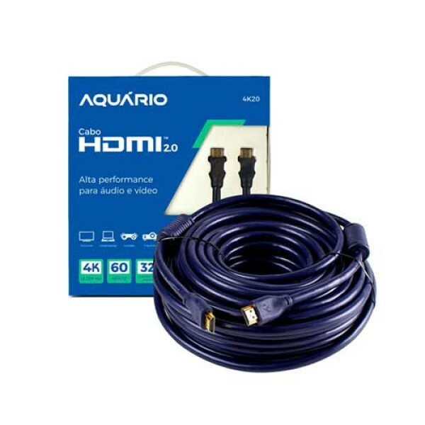 CABO HDMI AQUARIO 2.0 4K ULTRA HD 3D 20M COM FILTRO - 4K20 Avaliação: SKU.: 13476 CABO HDMI AQUARIO 2.0 4K ULTRA HD 3D 20M COM FILTRO - 4K20 is available for purchase in increments of 1 Faça Login ou Cadastre-se para comprar Descubra mais sobre Trazendo mais qualidade de som e imagem para seus equipamentos favoritos, dê o que ele merece! Cabo HDMI Aquário com resolução até 4K. Aproveite o grande comprimento para tornar flexível sua instalação empresarial com televisões ou até mesmo uma grande estação de vídeo em shoppings centers, que contam com media indoor. Se precisa percorrer uma distância maior até o monitor ou TV é ã opção ideal! A versão 2.0 além de chegar a uma taxa de 16Gbps, possui alta blindagem para evitar qualquer tipo de interferência, além de ser compatível com proporção de cinema (21:9). Com resolução máxima em 4K de 4096x2048 a uma taxa de quadros em 60Hz, traz muito mais fluidez que a tecnologia anterior, na Versão 1.4. A diferença entre a qualidade de imagem normal e em full HD é muito grande, principalmente para quem precisa ter fidelidade e rapidez na hora de transmitir uma apresentação, fotos ou vídeos. Para conseguir garantir 36 meses de garantia com um grande comprimento, o cabo tem uma ótima resistência, blindagem em sua capa, além de ter os fios inteiramente em cobre. Tudo isso você encontra em todos modelos de Cabos HDMI Aquário. Você pode conectar qualquer aparelho, seja um video game, smart tv box, home theater, computador, DVD, etc. Ele é compatível com a tecnologia ARC para ser utilizada com transferência de áudio, o cabo perfeito pra conectar o seu Home Theater na TV utilizando apenas 1 Cabo HDMI pela porta ARC de mesmo nome. Características do cabo: -18 Gbps alta velocidade de largura de banda -2160p, HDR Ready e 3D em Full HD -Conector revestido em ouro -Ponta livre de oxigênio e com 19 pinos -Som imersivo com até 32 canais de áudio Informações Técnicas: -Código do Produto: 4K20 -Comprimento: 20 metros -Versão: 2.0 - 60 Hz -Canal de retorno de Áudio: ARC -Resolução: 4K (4096 x 2160p) -Conectores: Banhados a ouro com 19 pinos -Garantia: 3 anos -Peso: 1,5 kg Características Código Identificador (SKU) 13476 Garantia do Fabricante 12 meses Marca AQUARIO Cor Preto EAN 7898127608598 NCM 85442000 Origem do Produto Estrangeira Mercado Interno - Adquirida no mercado interno