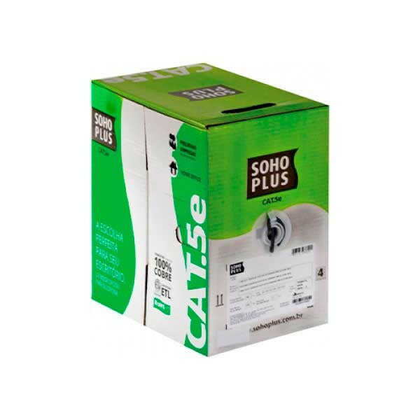 CABO LAN SOHO PLUS U/UTP CAT5E CMX 24 AWG 4P PRETO 100% COBRE (HOMOLOGADO ANATEL) (CX305M) Avaliação: SKU.: 12032 CABO LAN SOHO PLUS U/UTP CAT5E CMX 24 AWG 4P PRETO 100% COBRE (HOMOLOGADO ANATEL) (CX305M) is available for purchase in increments of 1 Faça Login ou Cadastre-se para comprar Descubra mais sobre Principal elemento de uma rede, determina a velocidade em que os dados irão trafegar. Sua correta instalação é importante para garantir a qualidade do sinal. Informações Técnicas: - Categoria: CAT.5E; - Construção: U/UTP - 4 pares trançados compostos de condutores sólidos de cobre nu, 24 AWG, isolados em polietileno especial; - Cor: Preto; - Capa externa: PVC retardante à chama; - Classe de flamabilidade: CMX: IEC 60332-1 conforme ABNT NBR 14705 - Embalagem: Caixa FASTBOX em lance padrão de 305 metros; - Marcação sequencial métrica decrescente (305 / 0 m), que facilita a visualização da quantidade restante na caixa e no cálculo dos lances para instalação; - Diâmetro nominal: 4,8 mm; - Massa líquida: 26 kg/km - NVP (Velocidade Nominal de Propagação): 68%; - Produto que atende as políticas de respeito ao meio ambiente. Aplicações: Pode ser utilizado com os seguintes padrões atuais de redes citados abaixo: a. ATM -155 (UTP), AF-PHY-OO15.000 y AF-PHY-0018.000, 155/51/25 Mbps; b. TP-PMD , ANSI X3T9.5, 100 Mbps; c. GIGABIT ETHERNET, IEEE 802.3z, 1000 Mbps; d. 100BASE-TX, IEEE 802.3u, 100 Mbps; e. 100BASE-T4, IEEE 802.3u ,100 Mbps; f. 100vg-AnyLAN, IEEE802.12, 100 Mbps; g. 10BASE-T , IEEE802.3, 10 Mbps; h. TOKEN RING, IEEE802.5 , 4/16 Mbps; i. 3X-AS400, IBM, 10 Mbps; Características Código Identificador (SKU) 12032 Garantia do Fabricante 12 meses Marca SOHO PLUS EAN 7893137036256 NCM 85444900 Origem do Produto Nacional