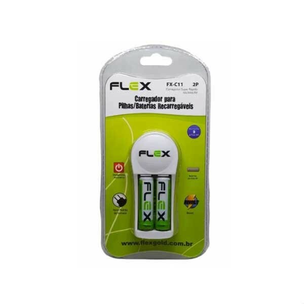 CARREGADOR PARA PILHAS FLEX GOLD AA/ AAA/ 9V C/ 2 PILHAS AA 2700MAH BIV AUTO STOP - FX-C11/2P Avaliação: SKU.: 13327 CARREGADOR PARA PILHAS FLEX GOLD AA/ AAA/ 9V C/ 2 PILHAS AA 2700MAH BIV AUTO STOP - FX-C11/2P is available for purchase in increments of 1 Faça Login ou Cadastre-se para comprar Descubra mais sobre -Carrega 1-2 baterias recarregáveis AA/AAA ou 1 baterias 9V simultaneamente; -Conector para baterias HI-Mih, Ni-Cd, 9V; -Acompanha 2 pilhas AA 2700mAh; -Produto certificado pelo INMETRO; Principais características: -Novo padrão de tomada; -LED apaga ao término da carga; -Desligamento automático; -2 canais de cargas independentes; -3 funções de segurança: monitoramento de voltagem, microprocessador que controla o modo ideal de carga e proteção contra curto circuito; Informações Técnicas: -Referência do modelo: FX-C11-2P; -Tensão de entrada: Bivolt automático (AC 100~240V); -Saída: 1.2V DC - 150mA; 1 x 9V DC - 20mA; -Cor do produto: Branco Características Código Identificador (SKU) 13327 Garantia do Fabricante 6 meses Marca FLEX GOLD EAN 7908417107011 NCM 85044021 Origem do Produto Nacional