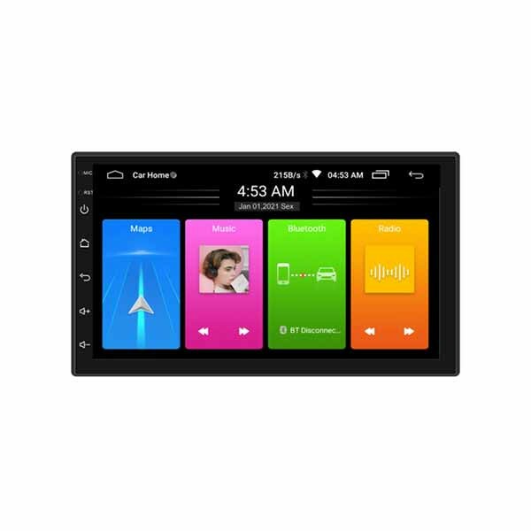 MULTIMIDIA ROADSTAR ANDROID 7'' - RS808BR PLUS Avaliação: SKU.: 12341 Avise-me quando chegar Descubra mais sobre A multimídia RS-808BR Plus possui botões com 7 cores de iluminação e tela de 7" full touch com uma interface intuitiva e amigável. Você pode espelhar seu celular com sistema Android ou IOS* diretamente na tela da RS-808BR Plus através do WiFi (Sem fio). Espelha Android a partir da versão 5 e Iphone (até a versão 13). Informações Técnicas: -Sistema: Android 10.1 -Processador: Quad Core 1.3 Ghz -Memória RAM: 1 Gb -Memória FLASH: 16 Gb -Painel: Fixo com botões touch e iluminação RGB -Tela: Full Touch 7" Capacitiva -Rádio: FM com memória para 18 estações FM -Conexões: Bluetooth, WiFi e GPS (Acompanha Antena) -Entradas traseiras: 2 Vídeo Auxiliar, 2 RCA (Audio), 1 Câmera de Ré, 2 USB´s e Microfone Externo (Acompanha Microfone) -Saídas: 2 RCA (Audio) e 1 RCA (Vídeo) -Comando de Volante: SIM (em alguns modelos de carros poderá ser necessário o uso de interface) -Potência: 4 Canais de 50 Watts RMS Características Código Identificador (SKU) 12341 Garantia do Fabricante 12 meses Marca ROADSTAR EAN 7898587424516 NCM 85272100 Origem do Produto Estrangeira Mercado Interno - Adquirida no mercado interno