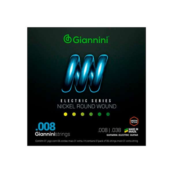 ENCORDOAMENTO PARA GUITARRA GIANNINI NICKEL ROUND WOUND GEEGST8 (.008 - .038) - 5955 Avaliação: SKU.: 11438 ENCORDOAMENTO PARA GUITARRA GIANNINI NICKEL ROUND WOUND GEEGST8 (.008 - .038) - 5955 is available for purchase in increments of 1 Faça Login ou Cadastre-se para comprar Descubra mais sobre A série Electric traz toda a sonoridade dos encordoamentos Giannini para a sua guitarra e contra-baixo. O encordoamento para guitarra Giannini GEEGST08 é composto de um núcleo de aço revestido por Níquel, produz um som brilhante e agressivo que atende uma grande variedades de estilos musicais, sendo bem resistente a oxidação e corrosão. Acompanha uma corda Mi extra grátis! Todos os encordoamentos Giannini são produzidos no Brasil, em nossa fábrica em Salto, interior de São Paulo. - Selo de Qualidade ISO 9001 Toda a linha de encordoamentos Giannini conta com a aprovação do selo de qualidade ISO 9001. Mas o quê é o selo ISO 9001? ISO 9001 é uma série de normas e regras que buscam garantir a qualidade final do seu encordoamento. Estes procedimentos englobam desde a escolha da matéria-prima e seus fornecedores, passando por todo o processo de produção dos encordoamentos, capacitação da mão-de-obra envolvida na produção, sua distribuição, até o produto chegar ao lojista e às mãos do consumidor. Estes processos e todos os envolvidos nele passam por auditorias todos os anos, para verificar se estão sendo seguidos de acordo com a norma estabelecida, para que o selo seja renovado. Desde 2007 a Giannini conta com o selo ISO 9001 em sua linha de encordoamentos, sendo renovado anualmente e comprovando a qualidade de cada encordoamento que chega à suas mãos e aos seus instrumentos. Informações Técnicas: - Fabricação: Brasil - Alma: Aço - Revestimento: Níquel - Acabamento: Bolinha - Comprimento de escala: 648 mm / 25 1/2″ Características Código Identificador (SKU) 11438 Garantia do Fabricante 3 meses Marca GIANNINI EAN 843104100258 Origem do Produto Nacional