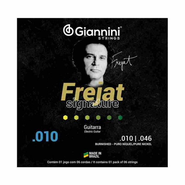 ENCORDOAMENTO PARA GUITARRA GIANNINI SIGNATURE FREJAT SSGPNFJ (.010 - .046) - 20752 Avaliação: SKU.: 14416 ENCORDOAMENTO PARA GUITARRA GIANNINI SIGNATURE FREJAT SSGPNFJ (.010 - .046) - 20752 is available for purchase in increments of 1 Faça Login ou Cadastre-se para comprar Descubra mais sobre A série Signature traz para você encordoamentos desenvolvidos pelos melhores músicos, com configurações e materiais escolhidos por eles para tirar o melhor som dos seus instrumentos. O guitarrista Roberto Frejat faz parte da história do rock brasileiro, seja com o Barão Vermelho ou na sua carreira solo. O encordoamento Signature Frejat, produzido com puro níquel e com as cordas polidas nos bordões, traz para você a sonoridade que o Frejat utiliza em todas suas composições. Todos os encordoamentos Giannini são produzidos no Brasil, em nossa fábrica em Salto, interior de São Paulo. Selo de Qualidade ISO 9001 ISO 9001 é uma série de normas e regras que buscam garantir a qualidade final do seu encordoamento. Estes procedimentos englobam desde a escolha da matéria-prima e seus fornecedores, passando por todo o processo de produção dos encordoamentos, capacitação da mão-de-obra envolvida na produção, sua distribuição, até o produto chegar ao lojista e às mãos do consumidor. Estes processos e todos os envolvidos nele passam por auditorias todos os anos, para verificar se estão sendo seguidos de acordo com a norma estabelecida, para que o selo seja renovado. Desde 2007 a Giannini conta com o selo ISO 9001 em sua linha de encordoamentos, sendo renovado anualmente e comprovando a qualidade de cada encordoamento que chega à suas mãos e aos seus instrumentos. Especificações Fabricação: Brasil Alma: Aço Revestimento: Puro niquel Acabamento: Burnished Comprimento de escala: 648 mm / 25 1/2″ Código de barras: 7890443014862 Código Mega: 20752 Características Código Identificador (SKU) 14416 Garantia do Fabricante 3 meses Modelo SSGPNFJ (.010 - .046) - 20752 Marca GIANNINI EAN 7890443014862 NCM 92093000 Origem do Produto Nacional