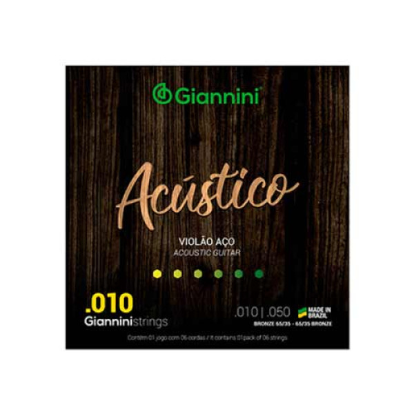 ENCORDOAMENTO PARA VIOLAO AÇO 6 CORDAS GIANNINI ACUSTICO BRONZE 65/35 GESWAM (.010 - .050) - 5924 Avaliação: SKU.: 11413 ENCORDOAMENTO PARA VIOLAO AÇO 6 CORDAS GIANNINI ACUSTICO BRONZE 65/35 GESWAM (.010 - .050) - 5924 is available for purchase in increments of 1 Faça Login ou Cadastre-se para comprar Descubra mais sobre Os encordoamentos Giannini da série Acústico são perfeitos para você conseguir o melhor som, limpo e encorpado, do seu instrumento. O encordoamento para violão aço Acústico GESWAM é indicado para músicos que gostam de um encordoamento com som brilhante e limpo. Todos os encordoamentos Giannini são produzidos no Brasil, em nossa fábrica em Salto, interior de São Paulo. - Bronze 65/35 Formado por Cobre e Zinco, é um metal de coloração amarela. Esta liga contém 35% de Zinco e 5% demais metais, e sua cor varia conforme a porcentagem de Cobre presente na liga. Nas cordas musicais apresentam um som brilhante e bem nítido. - Selo de Qualidade ISO 9001 Toda a linha de encordoamentos Giannini conta com a aprovação do selo de qualidade ISO 9001. Mas o quê é o selo ISO 9001? ISO 9001 é uma série de normas e regras que buscam garantir a qualidade final do seu encordoamento. Estes procedimentos englobam desde a escolha da matéria-prima e seus fornecedores, passando por todo o processo de produção dos encordoamentos, capacitação da mão-de-obra envolvida na produção, sua distribuição, até o produto chegar ao lojista e às mãos do consumidor. Estes processos e todos os envolvidos nele passam por auditorias todos os anos, para verificar se estão sendo seguidos de acordo com a norma estabelecida, para que o selo seja renovado. Desde 2007 a Giannini conta com o selo ISO 9001 em sua linha de encordoamentos, sendo renovado anualmente e comprovando a qualidade de cada encordoamento que chega à suas mãos e aos seus instrumentos. Informações Técnicas: - Fabricação: Brasil - Alma: Aço - Revestimento: Bronze 65/35 - Acabamento: Bolinha - Comprimento de escala: 648 mm / 25 1/2″ Características Código Identificador (SKU) 11413 Garantia do Fabricante 3 meses Modelo GESWAM Marca GIANNINI EAN 7898159186781 NCM 9209.30.00 Origem do Produto Nacional