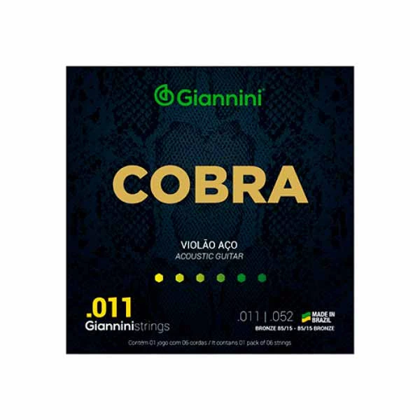 ENCORDOAMENTO PARA VIOLAO AÇO 6 CORDAS GIANNINI COBRA BRONZE 85/15 GEEFLK (.011 - .052) - 5950 Avaliação: SKU.: 11426 ENCORDOAMENTO PARA VIOLAO AÇO 6 CORDAS GIANNINI COBRA BRONZE 85/15 GEEFLK (.011 - .052) - 5950 is available for purchase in increments of 1 Faça Login ou Cadastre-se para comprar Descubra mais sobre A série Cobra apresenta toda a versatilidade dos encordoamentos Giannini. O encordoamento para violão aço Giannini Cobra GEEFLK é revestido com Bronze 85/15, indicado para músicos que gostam de encordoamento com um som brilhante, encorpado e com ótimo sustain. Todos os encordoamentos Giannini são produzidos no Brasil, em nossa fábrica em Salto, interior de São Paulo. - Bronze 85/15 Formado por Cobre e Zinco, é um metal de cor amarelo ouro. Esta liga contém entre 5 e 15% de Zinco. Nas cordas musicais produzem um som brilhante, encorpado e com uma boa sustentação. Perfeitas para vários estilos musicais. - Selo de Qualidade ISO 9001 Toda a linha de encordoamentos Giannini conta com a aprovação do selo de qualidade ISO 9001. Mas o quê é o selo ISO 9001? ISO 9001 é uma série de normas e regras que buscam garantir a qualidade final do seu encordoamento. Estes procedimentos englobam desde a escolha da matéria-prima e seus fornecedores, passando por todo o processo de produção dos encordoamentos, capacitação da mão-de-obra envolvida na produção, sua distribuição, até o produto chegar ao lojista e às mãos do consumidor. Estes processos e todos os envolvidos nele passam por auditorias todos os anos, para verificar se estão sendo seguidos de acordo com a norma estabelecida, para que o selo seja renovado. Desde 2007 a Giannini conta com o selo ISO 9001 em sua linha de encordoamentos, sendo renovado anualmente e comprovando a qualidade de cada encordoamento que chega à suas mãos e aos seus instrumentos. Informações Técnicas: - Fabricação: Brasil - Alma: Aço - Revestimento: Bronze 85/15 - Acabamento: Bolinha - Comprimento de escala: 648 mm / 25 1/2″ Características Código Identificador (SKU) 11426 Garantia do Fabricante 3 meses Modelo GEEFLK Marca GIANNINI EAN 7890443002395 NCM 9209.30.00 Origem do Produto Nacional