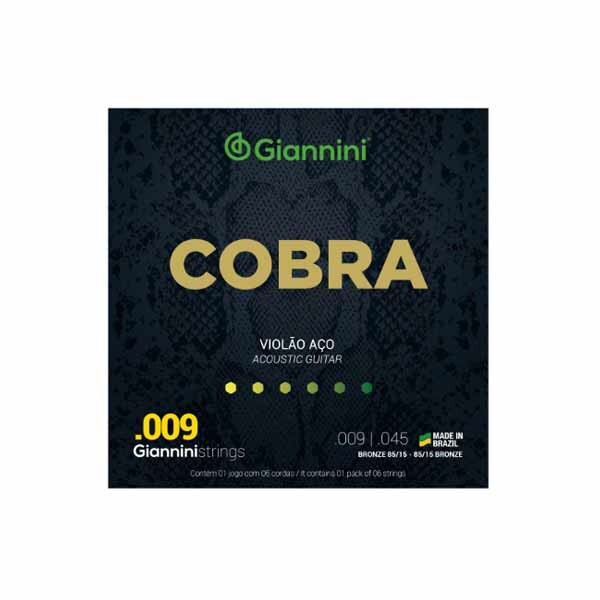 ENCORDOAMENTO PARA VIOLAO AÇO 6 CORDAS GIANNINI COBRA BRONZE 85/15 GEEWAK (.009 - .045) - 5948 Avaliação: SKU.: 13630 ENCORDOAMENTO PARA VIOLAO AÇO 6 CORDAS GIANNINI COBRA BRONZE 85/15 GEEWAK (.009 - .045) - 5948 is available for purchase in increments of 1 Faça Login ou Cadastre-se para comprar Descubra mais sobre A série Cobra apresenta toda a versatilidade dos encordoamentos Giannini. O encordoamento para violão aço Giannini Cobra GEEWAK é revestido com Bronze 85/15, indicado para músicos que gostam de encordoamento com um som brilhante, encorpado e com ótimo sustain. Todos os encordoamentos Giannini são produzidos no Brasil, em nossa fábrica em Salto, interior de São Paulo. Bronze 85/15 Formado por Cobre e Zinco, é um metal de cor amarelo ouro. Esta liga contém entre 5 e 15% de Zinco. Nas cordas musicais produzem um som brilhante, encorpado e com uma boa sustentação. Perfeitas para vários estilos musicais. Selo de Qualidade ISO 9001 Toda a linha de encordoamentos Giannini conta com a aprovação do selo de qualidade ISO 9001. Mas o quê é o selo ISO 9001? ISO 9001 é uma série de normas e regras que buscam garantir a qualidade final do seu encordoamento. Estes procedimentos englobam desde a escolha da matéria-prima e seus fornecedores, passando por todo o processo de produção dos encordoamentos, capacitação da mão-de-obra envolvida na produção, sua distribuição, até o produto chegar ao lojista e às mãos do consumidor. Estes processos e todos os envolvidos nele passam por auditorias todos os anos, para verificar se estão sendo seguidos de acordo com a norma estabelecida, para que o selo seja renovado. Desde 2007 a Giannini conta com o selo ISO 9001 em sua linha de encordoamentos, sendo renovado anualmente e comprovando a qualidade de cada encordoamento que chega à suas mãos e aos seus instrumentos. Especificações Fabricação: Brasil Alma: Aço Revestimento: Bronze 85/15 Acabamento: Bolinha Comprimento de escala: 650 mm Características Código Identificador (SKU) 13630 Garantia do Fabricante 3 meses Modelo GEEWAK Marca GIANNINI EAN 7898159187023 NCM 9209.30.00 Origem do Produto Nacional
