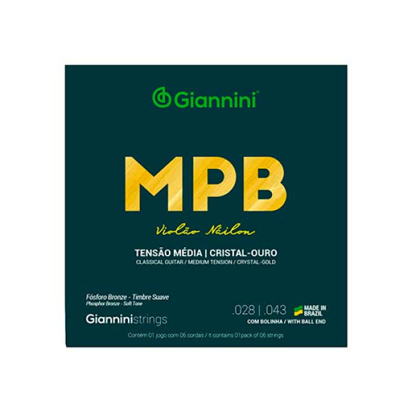 ENCORDOAMENTO PARA VIOLAO NAILON 6 CORDAS GIANNINI MPB FOSFORO BRONZE GENWG CRISTAL-OURO MEDIA - 5932 Avaliação: SKU.: 11434 Avise-me quando chegar Descubra mais sobre A série MPB apresenta toda a sonoridade que a nossa música brasileira pede. O encordoamento para violão náilon Giannini MPB GENWG é indicado para músicos que gostam de cordas com uma pegada média. Produzidas em náilon cristal-ouro, o modelo GENWG tem tensão média. Todos os encordoamentos Giannini são produzidos no Brasil, em nossa fábrica em Salto, interior de São Paulo. - Fósforo Bronze Formado na sua composição por 92% de Cobre, 8% de Estanho e um residual de Fósforo é um metal avermelhado. Nas cordas musicais produzem som aveludado, grave e quente, com maior durabilidade. - Selo de Qualidade ISO 9001 Toda a linha de encordoamentos Giannini conta com a aprovação do selo de qualidade ISO 9001. Mas o quê é o selo ISO 9001? ISO 9001 é uma série de normas e regras que buscam garantir a qualidade final do seu encordoamento. Estes procedimentos englobam desde a escolha da matéria-prima e seus fornecedores, passando por todo o processo de produção dos encordoamentos, capacitação da mão-de-obra envolvida na produção, sua distribuição, até o produto chegar ao lojista e às mãos do consumidor. Estes processos e todos os envolvidos nele passam por auditorias todos os anos, para verificar se estão sendo seguidos de acordo com a norma estabelecida, para que o selo seja renovado. Desde 2007 a Giannini conta com o selo ISO 9001 em sua linha de encordoamentos, sendo renovado anualmente e comprovando a qualidade de cada encordoamento que chega à suas mãos e aos seus instrumentos. Informações Técnicas: - Fabricação: Brasil - Alma: Náilon - Revestimento: Bronze Fosforoso - Acabamento: Bolinha - Cordas primas em náilon cristal - Comprimento de escala: 648 mm / 25 1/2″ Características Código Identificador (SKU) 11434 Garantia do Fabricante 3 meses Marca GIANNINI EAN 843104100340 Origem do Produto Nacional