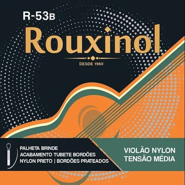 ENCORDOAMENTO PARA VIOLAO NYLON 6 CORDAS ROUXINOL PRETO/PRATEADA TENSAO MEDIA - R53B Avaliação: SKU.: 13904 ENCORDOAMENTO PARA VIOLAO NYLON 6 CORDAS ROUXINOL PRETO/PRATEADA TENSAO MEDIA - R53B is available for purchase in increments of 1 Faça Login ou Cadastre-se para comprar Descubra mais sobre ACABAMENTO COM TUBETE NOS BORDÕES Tensão Média Brinde: Palheta. Primas: Monofilamento técnico de nylon preto. Bordões: Alma de multifilamentos de nylon, encapada com metal prateado. 1ª MI(E) Preta .028” (0,71mm) 2ª SI(B) Preta .032” (0,81mm) 3ª SOL(G)Preta .040” (1,02mm) 4ª RÉ(D) Prateada .029” (0,74mm) 5ª LÁ(A) Prateada .035” (0,89mm) 6ª MI(E) Prateada .043” (1,09mm) Características Código Identificador (SKU) 13904 Garantia do Fabricante 3 meses Marca ROUXINOL EAN 7897813403530 NCM 92093000 Origem do Produto Nacional