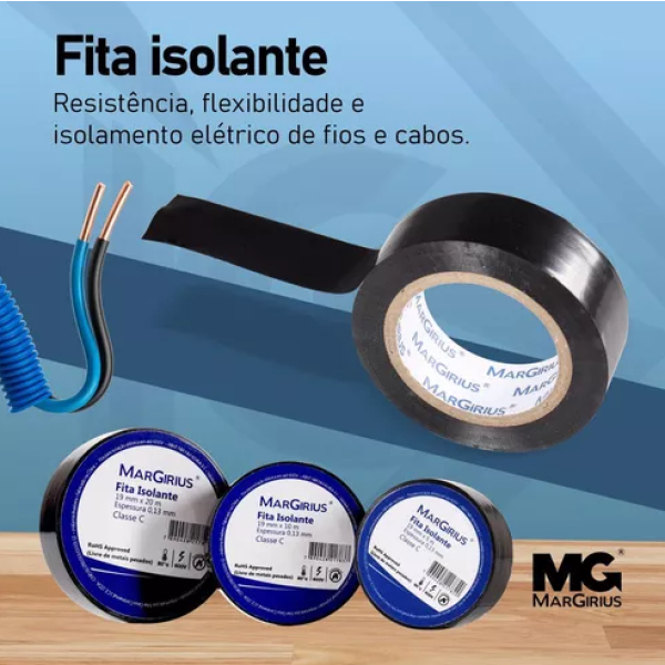 FITA ISOLANTE MARGIRIUS 10M X 19MM ESPESSURA 0,13MM CLASSE C - 21783 Avaliação: SKU.: 13703 Avise-me quando chegar Descubra mais sobre Para o isolamento elétrico de emendas em fios e cabos, em instalações de até 600V. Classe C – Espessura 0,13mm – Largura de 19mm 19mm X 10m 0,13mm Classe C Características Código Identificador (SKU) 13703 Garantia do Fabricante 12 meses Marca MARGIRIUS NCM 39191020 Origem do Produto Nacional