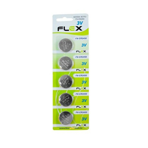 BATERIA LITHIUM FLEX GOLD 3V CR2450 C/5 - FX-CR2450 Avaliação: SKU.: 8928 Avise-me quando chegar Descubra mais sobre - Bateria Lithium CR2450; - Cartela com 5 baterias; - Aplicação: Ideal para calculadoras, agenda eletrônicas, placa mãe de computadores, controle remotos, chave de carros, entre outros... Informações Técnicas: - Referência do modelo: FX-CR2450; - Amperes: 600mAh; - Voltagem: 3 volts; Características Código Identificador (SKU) 8928 Garantia do Fabricante 6 meses Marca FLEX GOLD EAN 7898615157973 Origem do Produto Nacional