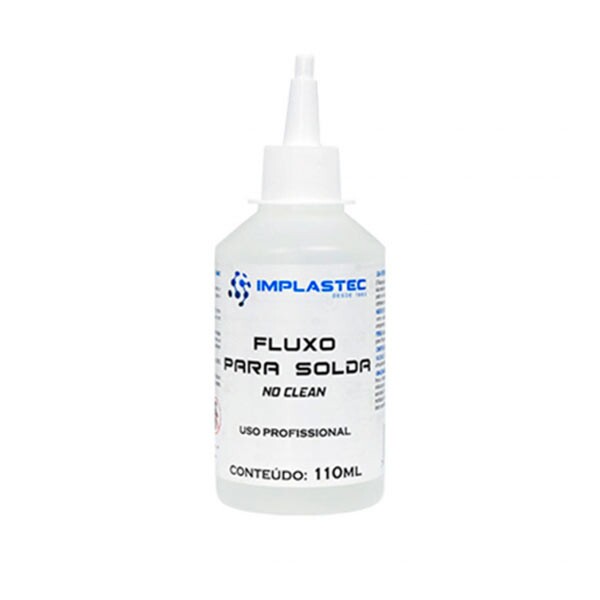 FLUXO PARA SOLDA IMPLASTEC NO CLEAN 110ML - PAFS011060CX Avaliação: SKU.: 13256 FLUXO PARA SOLDA IMPLASTEC NO CLEAN 110ML - PAFS011060CX is available for purchase in increments of 1 Faça Login ou Cadastre-se para comprar Descubra mais sobre Auxilia no processo de solda, não sendo necessário a limpeza da placa após a soldagem. Principais Aplicações: Soldagem pelo processo de estanhagem, onde não pode haver resíduos corrosivos e/ou resinas de colofônia. Transporte e Armazenagem: Armazenar na embalagem original, em local coberto, seco e ventilado, afastado de fontes de calor ou ignição, temperatura máxima à 50ºC. Mantenha afastado de crianças, animais e pessoas inaptas. Validade do produto: 36 meses (desde que observadas às condições de armazenamento). Manuseio e Método de Aplicação: Use máscara e óculos de proteção à inalação contra eventuais vapores e respingos. Use em local com grande ventilação. Observações: As informações e dados contidos neste boletim correspondem aos nossos conhecimentos atuais coligidos por pessoal técnico capacitado e confiável. Devem ser tomados como orientação e não como especificação garantida. Em qualquer caso de uso, o cliente deverá testar o desempenho contando com informações que possamos fornecer. Indicações de uso não são sugestões para se infringir patente ou legislação. Uma vez que não temos controle sobre o uso por terceiros, nossa responsabilidade se limita apenas ao nosso produto. Informações Técnicas: -Densidade @20°C, g/cm³ 0,802 à 0,812 -Sólidos (não voláteis), % Peso 1,0 ± 0,5 -Índice de Acidez, mg KOH/g 15 ± 2 -Halogênios, como cloretos, % Peso Ausentes -Água contida, % Peso Não contém -Metanol: Não contém Características Código Identificador (SKU) 13256 Garantia do Fabricante 12 meses Marca IMPLASTEC EAN 7898446730154 NCM 29051220 Origem do Produto Nacional