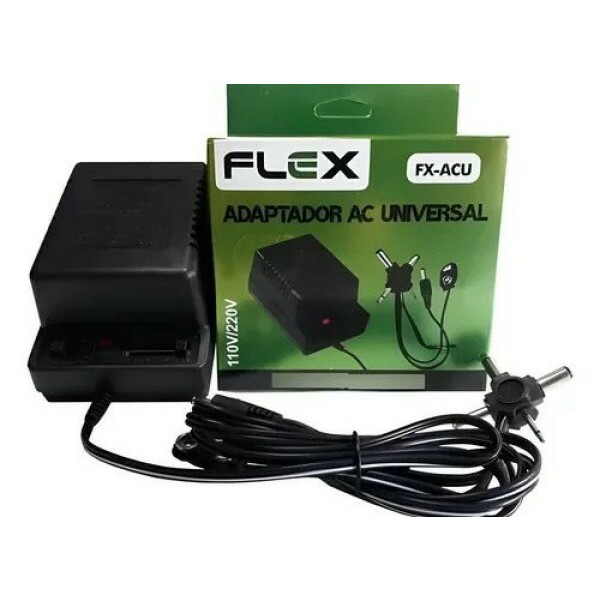 FONTE UNIVERSAL FLEX GOLD 7 VOLTAGENS A/C 1A C/ 6 PLUGS - FX-ACU Avaliação: SKU.: 14712 FONTE UNIVERSAL FLEX GOLD 7 VOLTAGENS A/C 1A C/ 6 PLUGS - FX-ACU is available for purchase in increments of 1 Faça Login ou Cadastre-se para comprar Descubra mais sobre Fonte Universal Flex Gold 7 Voltagens A/C 1A com 6 Plugs – FX-ACU A Fonte Universal Flex Gold FX-ACU é a solução prática e versátil para alimentar uma ampla variedade de dispositivos eletrônicos. Com 7 opções de voltagem ajustáveis e 6 conectores intercambiáveis, ela substitui diversas fontes diferentes em um único produto, oferecendo comodidade, segurança e compatibilidade com inúmeros aparelhos. Projetada para uso doméstico ou profissional, a FX-ACU fornece corrente estável de 1A e conta com proteção contra sobrecarga e curto-circuito, garantindo segurança para seus equipamentos. Ideal para modems, roteadores, câmeras, rádios, brinquedos eletrônicos, equipamentos de som e muito mais. Ficha Técnica – Flex Gold FX-ACU Especificação Descrição Marca Flex Gold Modelo FX-ACU Tipo Fonte Universal Ajustável Tensões de Saída 3V / 4.5V / 5V / 6V / 7.5V / 9V / 12V DC Corrente Máxima 1A Potência Máxima 12W Tensão de Entrada 100–240V AC (bivolt automática) Conectores Inclusos 6 plugs intercambiáveis Polaridade Ajustável (+/-) Proteções Contra curto-circuito, sobrecarga e sobretensão Uso Indicado Eletrônicos em geral (modem, roteador, câmera, brinquedos, som etc.) Cor Preto Garantia 6 meses (fabricante) Características Código Identificador (SKU) 14712 Voltagem Bivolt Garantia do Fabricante 6 meses Marca FLEX GOLD EAN 7908417107813 NCM 85044029 Origem do Produto Estrangeira Mercado Interno - Adquirida no mercado interno
