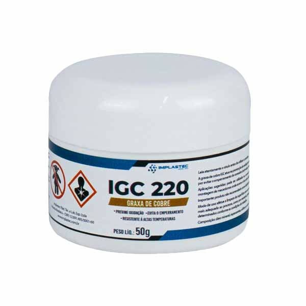 GRAXA DE COBRE IMPLASTEC IGC 220 POTE 50G - PAGC0050PS Avaliação: SKU.: 13275 GRAXA DE COBRE IMPLASTEC IGC 220 POTE 50G - PAGC0050PS is available for purchase in increments of 5 Faça Login ou Cadastre-se para comprar Descubra mais sobre A IGC 220 é uma pasta utilizada na solução de problemas envolvendo más conexões. Todas as conexões elétricas podem gerar a formação de óxidos devido à ação do oxigênio atmosférico na superfície da junção conectiva. Esses óxidos gerados contribuem para a ocorrência de curtos-circuitos, aquecimentos demasiadamente elevados, erosões dos contatos, o que podem acarretar na geração de faíscas e até mesmo no rompimento da conexão. A IGC 220 atua exatamente na prevenção da formação de tais óxidos, com formulação a base de cobre coloidal e considerável estabilidade à presença de água. Principais Aplicações: A IGC 220 deve ser aplicada em conexões de diversas composições, tais como: condutores cobre-cobre, cobre-alumínio, latão-cobre e cobre-aço. Características: -Composição: Veículo Sintético / Cobre Coloidal -Aparência: Pastosa -Ponto De Gota: Inexistente -Estabilidade à água: Estável -Consistência NLGI: 2 -Penetração: 265-295 (1/10 mm) -Cor: Cobre brilhante Transporte e Armazenagem: A IGC 220 deve ser transportada e armazenada nas embalagens fechadas e em locais limpos e secos, conforme prática comum com produtos químicos. Verifique a classificação deste produto antes de transportá-lo. Manuseio e Método de Aplicação: Antes da aplicação, as superfícies devem ser limpas com solventes à base de hidrocarbonetos como querosene, hexano, isoparafina, entre outros utilizados para a mesma prática. Devido as suas propriedades, é de facil bombeamento, a rápida aplicação da IGC 220 é possibilitada por meio de pistolas, graxeiras manuais (ou pincéis) e lubrificadores pneumáticos. Os intervalos de lubrificação deverão ser determinados conforme as condições de trabalho. Observações: As informações e dados contidos neste boletim correspondem aos nossos conhecimentos atuais coligidos por pessoal técnico capacitado e confiável. Devem ser tomados como orientação e não como especificação garantida. Em qualquer caso de uso, o cliente deverá testar o desempenho contando com informações que possamos fornecer. Indicações de uso não são sugestões para se infringir patente ou legislação. Uma vez que não temos controle sobre o uso por terceiros, nossa responsabilidade se limita apenas ao nosso produto. Características Código Identificador (SKU) 13275 Garantia do Fabricante 12 meses Marca IMPLASTEC EAN 7898446730611 NCM 74062000 Origem do Produto Nacional