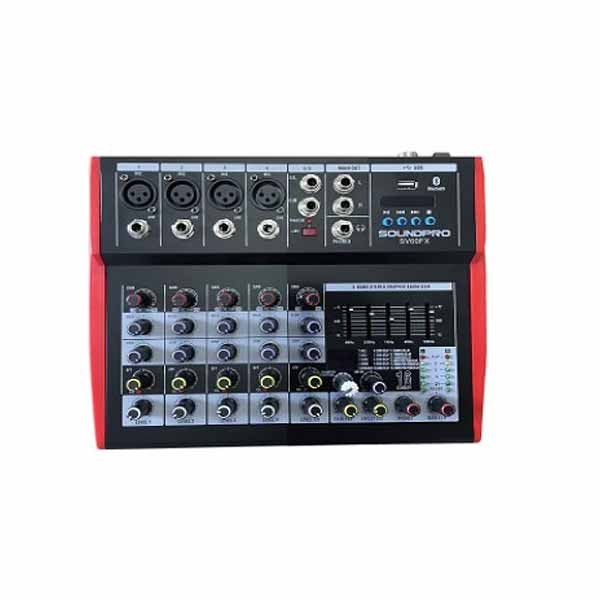 MESA DE SOM SOUNDPRO 4 CANAIS MONO + 1 STEREO COM BLUETOOTH/ EFEITO/ USB PLAYER/ PHANTOM POWER BIVOLT - SV60FX - FR Avaliação: SKU.: 12815 MESA DE SOM SOUNDPRO 4 CANAIS MONO + 1 STEREO COM BLUETOOTH/ EFEITO/ USB PLAYER/ PHANTOM POWER BIVOLT - SV60FX - FR is available for purchase in increments of 1 Faça Login ou Cadastre-se para comprar Descubra mais sobre A mesa de som SV60FX da SoundPro é tudo o que você precisa para fazer uma rápida configuração de seu sistema. Portálil, ultra-compacta e muito leve, são características da SV-60 a mesa de última geração, que conta com reprodução de arquivos em MP3 via USB. Informações Técnicas: - 4 entrada mono + 1 entrada RCA - Controle gain, agudo, grave, efeito, volume - Equalizador de 7 bandas - Phantom power - Efeito delay (echo) - Módulo USB player e recorder com bluetooth - Grava direto no pendrive (U-DISK) - Fonte bivolt Características Código Identificador (SKU) 12815 Voltagem Bivolt Garantia do Fabricante 12 meses Modelo SV60FX Marca SOUNDPRO EAN 7000000128158 NCM 85437099 Origem do Produto Estrangeira Mercado Interno - Adquirida no mercado interno