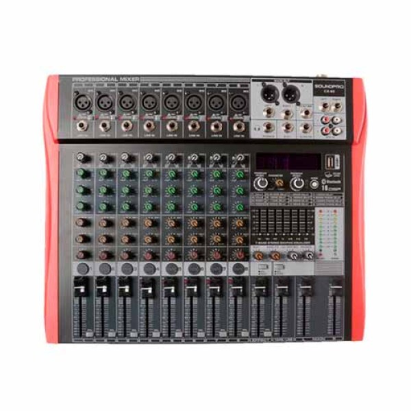 MESA DE SOM SOUNDPRO PROFISSIONAL 8 CANAIS BALANCEADAS COM EFEITOS/ EQUALIZADOR/ PHANTOM/ BLUETOOTH/ USB/ BIVOLT - CX80 Avaliação: SKU.: 12371 MESA DE SOM SOUNDPRO PROFISSIONAL 8 CANAIS BALANCEADAS COM EFEITOS/ EQUALIZADOR/ PHANTOM/ BLUETOOTH/ USB/ BIVOLT - CX80 is available for purchase in increments of 1 Faça Login ou Cadastre-se para comprar Descubra mais sobre O mixer CX-80 que foi desenvolvido para trabalhar em apresentações ao vivo, e também fornece todas as ferramentas necessárias que você vai precisar para realizar gravações de altíssima qualidade com uma sonoridade incrível, isto por que o mesmo conta com 8 canais individuais, 16 efeitos DSP, equalizador de 3 bandas, entrada para fone de ouvido, Phantom Power de +48 V que torna possível a utilização de microfones dinâmicos ou condensadores, Bluetooth e um poderoso set RCA com saída para gravação e entrada para TV e DVD. Informações Técnicas: Marca: SoundPro; Modelo: CX-80; Controle de ganho: (MAX 60dB); Tipo: Analógica; Interruptor: Liga/Desliga; Quantidade de canais: 6; Volume Auxiliar: AUX1 / AUX2; Volume do USB: Tape Input; Leds de volume: (Ideal acender somente até os leds verdes); Entrada para efeito externo; Volume geral do efeito: Módulo 16DPS; Quantidade de efeitos: 16; Entrada XLR balanceadas; Saídas master balanceadas: XLR; Phantom Power: +48V Para Microfone Condensador; Entrada P10 para instrumentos; Entrada para fone de ouvido; Saída P10 para fone de ouvido; Entrada RCA: CD, DVD, TV; Saída RCA: Gravação; Saídas auxiliares: Ligar amplificador e caixa de retorno; Saída para monitores estúdios; Equalização 3 Bandas: Grave, médio, agudo; Itens Inclusos: 01 Mesa De Som SoundPro CX-80; 01 Fonte Características Código Identificador (SKU) 12371 Garantia do Fabricante 12 meses Marca STAGE EAN 7898702000823 NCM 85437099 Origem do Produto Nacional