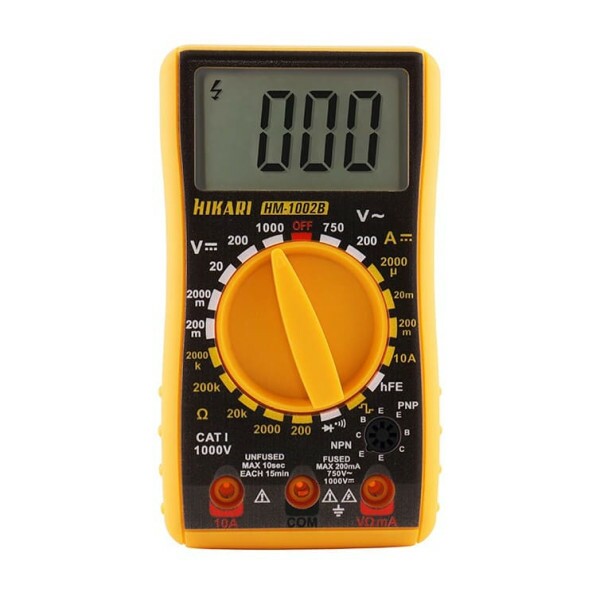 MULTIMETRO DIGITAL HIKARI HM-1002B - 21N278 Avaliação: SKU.: 13773 MULTIMETRO DIGITAL HIKARI HM-1002B - 21N278 is available for purchase in increments of 1 Faça Login ou Cadastre-se para comprar Descubra mais sobre Modelo: HM-1002B Cód. UCB: 21N278 Multímetro Digital Cat. I 1000V HM-1002B Hikari pode ser utilizado em bancadas para medir circuitos eletrônicos e ambientes monofásicos protegidos. Além do seu amplo display de 2,3', o HM-1002B apresenta um formato anatômico. Como característica adicional, este multímetro possui um gerador de onda quadrada, um soquete para transistor PNP e NPN aonde é possível realizar Teste hFE, contém também Teste de Continuidade com BIP e Teste de Diodo, além das medições tradicionais de tensão, corrente e resistência, proporcionando agilidade e precisão nas medições realizadas. Em conformidade com a IEC 61010-1, categoria de sobretensão Cat. I 1000V e com Dupla Isolação, este multímetro digital garante segurança ao realizar medições em sistemas elétricos de baixa tensão e oferece recursos avançados em um formato compacto. Multímetro Digital Cat. I 1000V HM-1002B Hikari é indispensável para profissionais e entusiastas que demandam precisão e confiabilidade. Contagem Máxima do Display: 2000 contagens (3 ½ Dígitos); Display Grande: Fácil visualização 2.3”. Taxa de Amostragem: aproximadamente 2 vezes por segundo; Indicação de Polaridade: Automática; Indicação de Sobrefaixa: “1” é mostrado no display; Indicação de bateria fraca: Símbolo é mostrado no display; Mudança de Faixa: Manual; Teste de Continuidade, Diodo, hFE de Transistor; Gerador de Onda Quadrada de 50 Hz; Tensão de Saída: Aproximadamente: 5Vpp; Impedância: Aproximadamente: 50 kΩ. Altitude de Operação: 2000m Ambiente de Operação: 0°C a 40°C, RH<80%; Ambiente de Armazenamento: -10°C a 60°C, RH<70%; Segurança / Conformidade: IEC/EM 61010-1 Sobretensão e Dupla Isolação, CAT I 1000V; Grau de poluição: 2; Proteção por Fusível de 500mA/250V para o Terminal de Entrada “mA” PPTC fusível de Auto Restauração; Tipo de Alimentação: 1 x 9V (Bateria NEDA 1604 ou 6F22ou 006P); Dimensões: 129(A) x 73(L) x 24(P)mm; Peso: Aproximadamente 120g (incluindo bateria); Garantia: 06 meses. ACESSÓRIOS INCLUSOS: Manual de Instruções Ponta de Prova (1 par) Bateria 9V (1 peça) Características Código Identificador (SKU) 13773 Garantia do Fabricante 12 meses Marca HIKARI EAN 7899810415615 NCM 90303100 Origem do Produto Estrangeira Mercado Interno - Adquirida no mercado interno