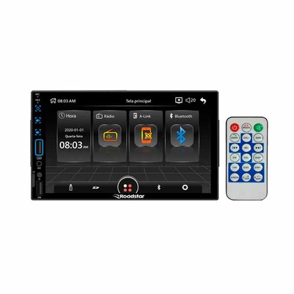 MULTIMIDIA ROADSTAR MP5 7'' - RS506BR Avaliação: SKU.: 12345 Avise-me quando chegar Descubra mais sobre A multimídia MP5 RS-506BR Plus possui botões com 7 cores de iluminação e tela de 7" full touch com uma interface intuitiva e amigável. Com a multimidia RS-506BR Plus você poderá curtir suas mídias de audio ou vídeo através da entrada USB ou de cartão micro SD. Através da conexão Bluetooth você pode atender, ou efetuar, suas chamadas telefônicas e também reproduzir suas playlists de seu celular direto na RS-506BR Plus. Você pode espelhar seu celular com sistema Android ou IOS* diretamente na tela da RS-506BR Plus através do cabo USB. *Espelha Android a partir da versão 5 e Iphone (até a versão 13). Informações Técnicas: -Painel: Fixo com botões em 7 cores de iluminação (azul, azul claro, branco, amarelo, vermelho, roxo e verde) -Tela: Full Touch 7" Capacitiva -Rádio: FM com memória para 18 estações FM -Conexões: Bluetooth -Entradas frontais: Micro SD, Auxiliar e 2 USB´S (1 Charger e 1 Player) -Entradas traseiras: 1 Vídeo Auxiliar, 1 Câmera de Ré, 1 Auxiliar e 1 Microfone Externo -Saídas: 2 RCA (Audio) e 2 RCA (Vídeo) -Tipo de Conector: ISO -Controle Remoto: SIM (Físico e por aplicativo para Android) -Comando de Volante: SIM (em alguns modelos de carros poderá ser necessário o uso de interface) -Potência: 4 Canais de 50 Watts RMS Características Código Identificador (SKU) 12345 Garantia do Fabricante 12 meses Marca ROADSTAR EAN 7898587424493 NCM 8527.21.00 Origem do Produto Estrangeira Mercado Interno - Adquirida no mercado interno