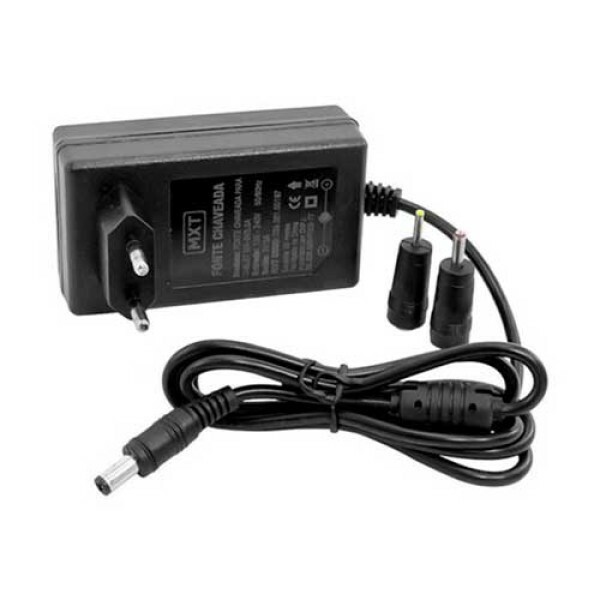 FONTE CHAVEADA MXT PARA USO GERAL/ TABLET 9V 3A (+ INTERNO) BIVOLT + 2 PLUGS MX-09V3A - 039.0001.00197 Avaliação: SKU.: 9009 FONTE CHAVEADA MXT PARA USO GERAL/ TABLET 9V 3A (+ INTERNO) BIVOLT + 2 PLUGS MX-09V3A - 039.0001.00197 is available for purchase in increments of 1 Faça Login ou Cadastre-se para comprar Descubra mais sobre - Fonte chaveada para Tablet 9V 3A Bivolt - Plugue fonte: - Plugue: P4 2,1 x 5,5 mm - Polaridade: (+) centro -Acompanha: 1 Adaptador para plugue 3,5mm x 1,35mm 1 Adaptador para plugue 2,5mm x 0,8mm Informações Técnicas: - Referência: MX-09V3A - Tensão de entrada: 100-240V - Tensão de saída: 9V - Amperagem: 3 - Polaridade: (+) centro - Plugue: P4 2,1 x 5,5 mm Características Código Identificador (SKU) 9009 Garantia do Fabricante 6 meses Marca MXT EAN 7899471883600 Origem do Produto Estrangeira Mercado Interno - Adquirida no mercado interno