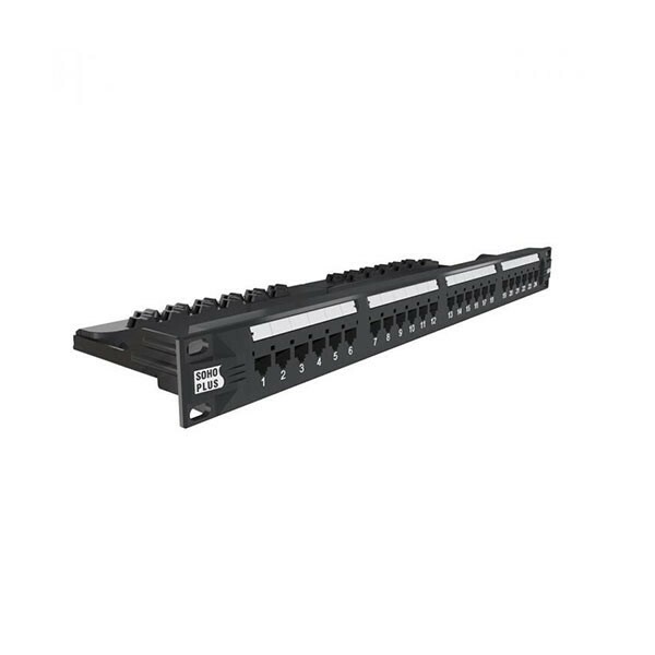 PATCH PANEL SOHO PLUS CAT.5E 24 PORTAS T568A/B 35050438 - 206971 Avaliação: SKU.: 13556 PATCH PANEL SOHO PLUS CAT.5E 24 PORTAS T568A/B 35050438 - 206971 is available for purchase in increments of 1 Faça Login ou Cadastre-se para comprar Descubra mais sobre Identificação do número das portas (1 até 24); - Suporte a IEEE 802.3, 1000 BASE T, 1000 BASE TX, EIA/TIA-854, ANSI-EIA/TIA-862, ATM, Vídeo, Sistemas de Automação Predial e todos os protocolos LAN anteriores; - Guia traseira que permite a fixação dos cabos, permitindo maior organização, segurança, flexibilidade e rapidez de montagem; - Painel frontal em material plástico de alto impacto e chapa de aço com porta etiquetas para identificação; - Pintura especial anti-corrosão; - Instrução de montagem em português impresso na embalagem; - Fornecido com etiquetas para identificação dos pontos e abraçadeiras para organização dos cabos; - Contato IDC em ângulo de 45 para melhoria da performance elétrica; - O Conectores RJ-45 montados sobre circuitos impressos totalmente protegidos; - Compatibilidade com conector RJ11. Atende os limites estabelecidos nas normas para CAT.5E/Classe D; Identificação do número das portas (1 até 24); Suporte a IEEE 802.3, 1000 BASE T, 1000 BASE TX, EIA/TIA-854, ANSI-EIA/TIA-862, ATM, Vídeo, Sistemas de Automação Predial e todos os protocolos LAN anteriores; Guia traseira que permite a fixação dos cabos, permitindo maior organização, segurança, flexibilidade e rapidez de montagem; Painel frontal em material plástico de alto impacto e chapa de aço com porta etiquetas para identificação; Pintura especial anti-corrosão; Instrução de montagem em português impresso na embalagem; Fornecido com etiquetas para identificação dos pontos e abraçadeiras para organização dos cabos; Contato IDC em ângulo de 45 para melhoria da performance elétrica; o Conectores RJ-45 montados sobre circuitos impressos totalmente protegidos; Compatibilidade com conector RJ11. Informações técnicas disponível em: https://www.furukawalatam.com/pt-br/versao-et-pdf/=a0A5w00001R92fA Características Código Identificador (SKU) 13556 Garantia do Fabricante 12 meses Marca SOHO PLUS EAN 7893137316921 NCM 85177900 Origem do Produto Nacional