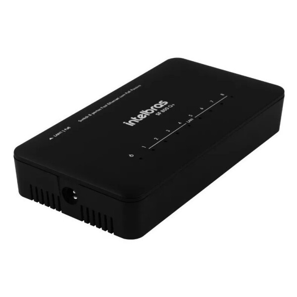 SWITCH INTELBRAS NAO GERENCIAVEL 8 PORTAS FAST ETHERNET POE PASSIVO SF 800 Q+ ULTRA - 4760020 - FR Avaliação: SKU.: 14025 Avise-me quando chegar Descubra mais sobre O Switch SF 800 Q+ possui 8 portas Fast Ethernet 10/100 Mbps para compartilhamento de internet com os dispositivos conectados, enquanto sua porta LAN 1 possui suporte a PoE passivo, que permite a alimentação do switch através do cabo de rede na presença de um Injetor PoE passivo. O switch viabiliza a construção de redes de comutação de dados permitindo a integração de computadores, rádios outdoor, roteadores e câmeras IP. Além disso, sua função QoS permite a priorização do tráfego de dados, voz e vídeo. Possibilidade de ser alimentado por PoE Passivo com um alcance de até 100m, eliminando a necessidade de tomadas de difícil acesso onde geralmente são instalados. Especificações técnicas: Características técnicas > 8 portas Fast Ethernet 10/100/1000 Mbps Backplane de 16 Gbps > Possibilidade de alimentação por PoE Passivo pela porta LAN 1 LEDs indicadores na parte superior > QoS para priorização de dados, voz e vídeo Garantia 1 Ano Freqüência de operação Fonte de alimentação externa Voltagem Bivolt Modelo do produto SF 800 Q+ Cor Preto Quantidade pacote 01 Comprimento do produto 6,50 Largura do produto 9,00 Altura do produto 15,00 Peso do produto 0,125 Numero de portas 8 Conteúdo da embalagem 1 switch 8 portas Fast Ethernet 1 fonte de alimentação bivolt automática 1 guia do usuário Características Código Identificador (SKU) 14025 Garantia do Fabricante 12 meses Marca Intelbras EAN 7896637647137 NCM 85176234 Origem do Produto Nacional PPB - Em conformidade com os processos produtivos básicos Vídeo